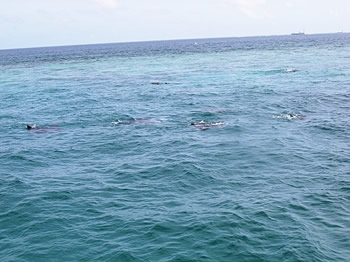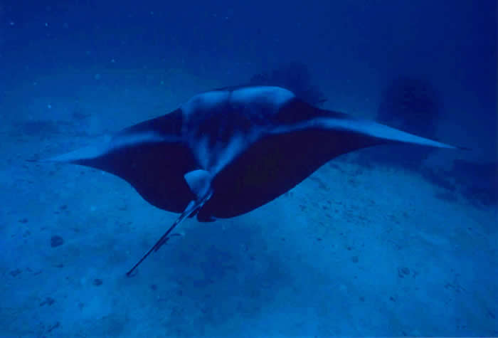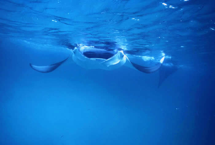 From the diving boat, we could see many Mantas were swimming on the surface!!