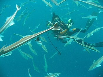 We met very curious situation too! We were surrounded by hundreds of “Remoras”!!